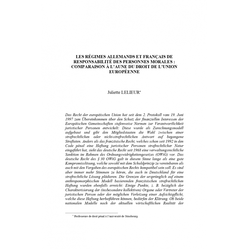Les régimes allemands et français de responsabilité des personnes morales - LELIEUR