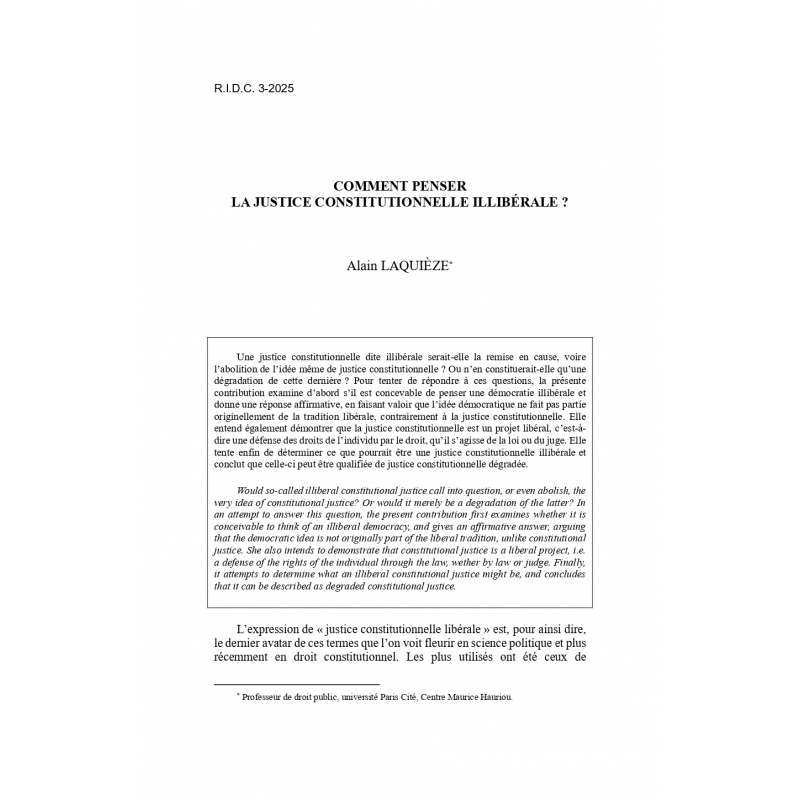 A. Laquièze, "Comment penser la justice constitutionnelle illibérale ?", n° 3, 2025, pp. 19-36.