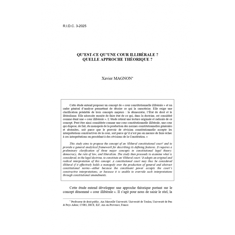 X. Magnon, "Qu'est ce qu'une cour illibérale ? Quelle approche théorique ?", n° 3, 2025, pp. 37-60.