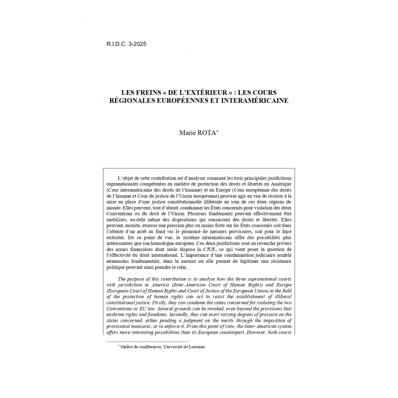 M. Rota, "Les freins "de l'extérieur": les cours régionales européennes et interaméricaines", n° 3, 2025, pp. 149-162.