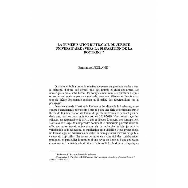 E. Jeuland - La numérisation du travail de juriste universitaire: vers la disparition de la doctrine ? - Collection Colloques volume 66, pp. 121-134.