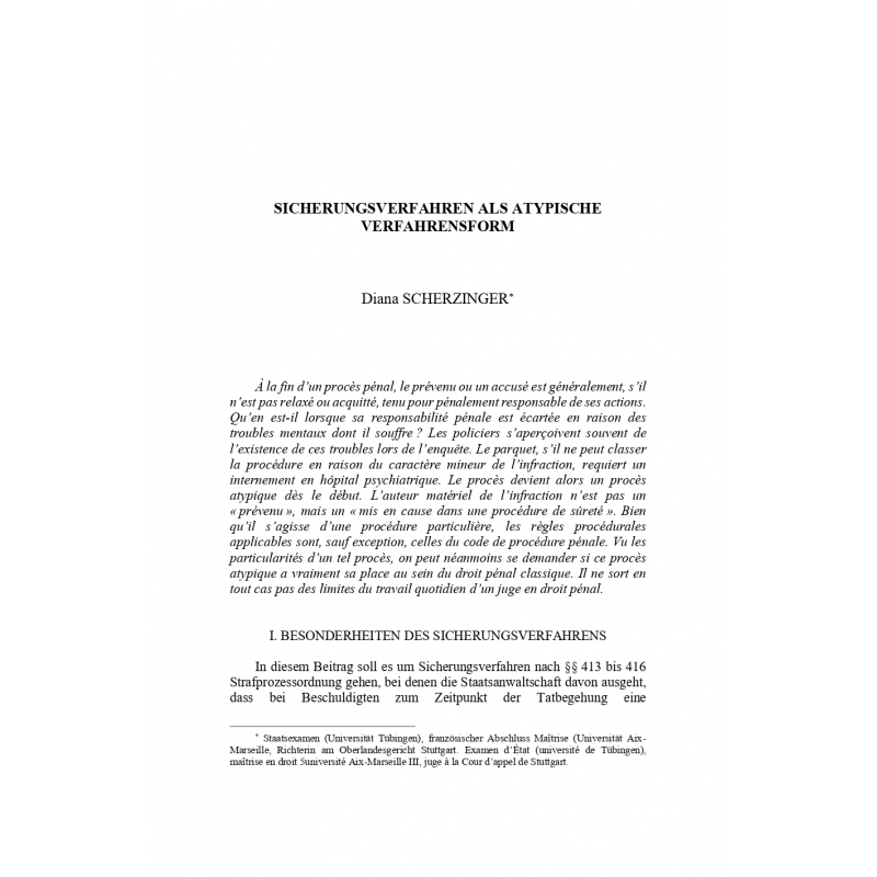 D. Scherzinger - Sicherungsverfahren als atypische verfahrensform - Collection Colloques volume 67, pp. 221-230.